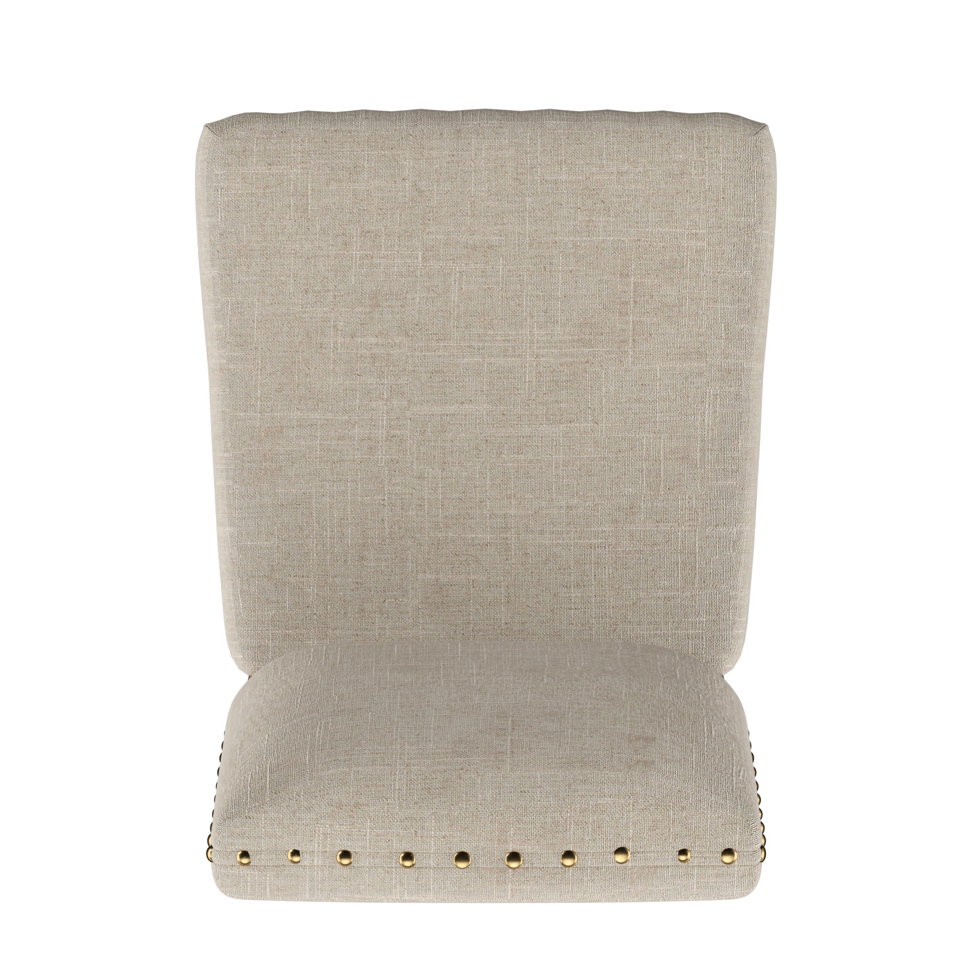 Nailhead Upholstered Dining Chairs (Set of 2) - Natural Finish, Beige Linen