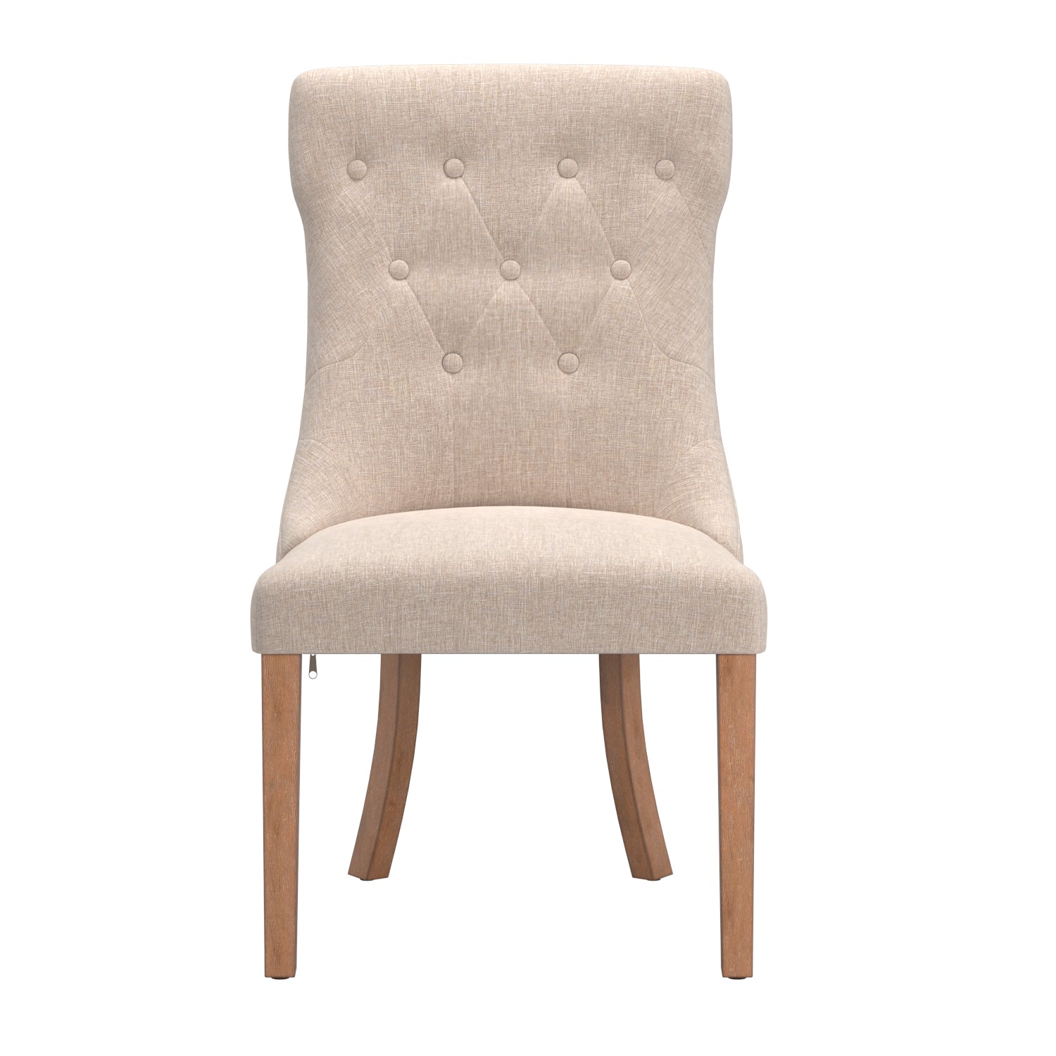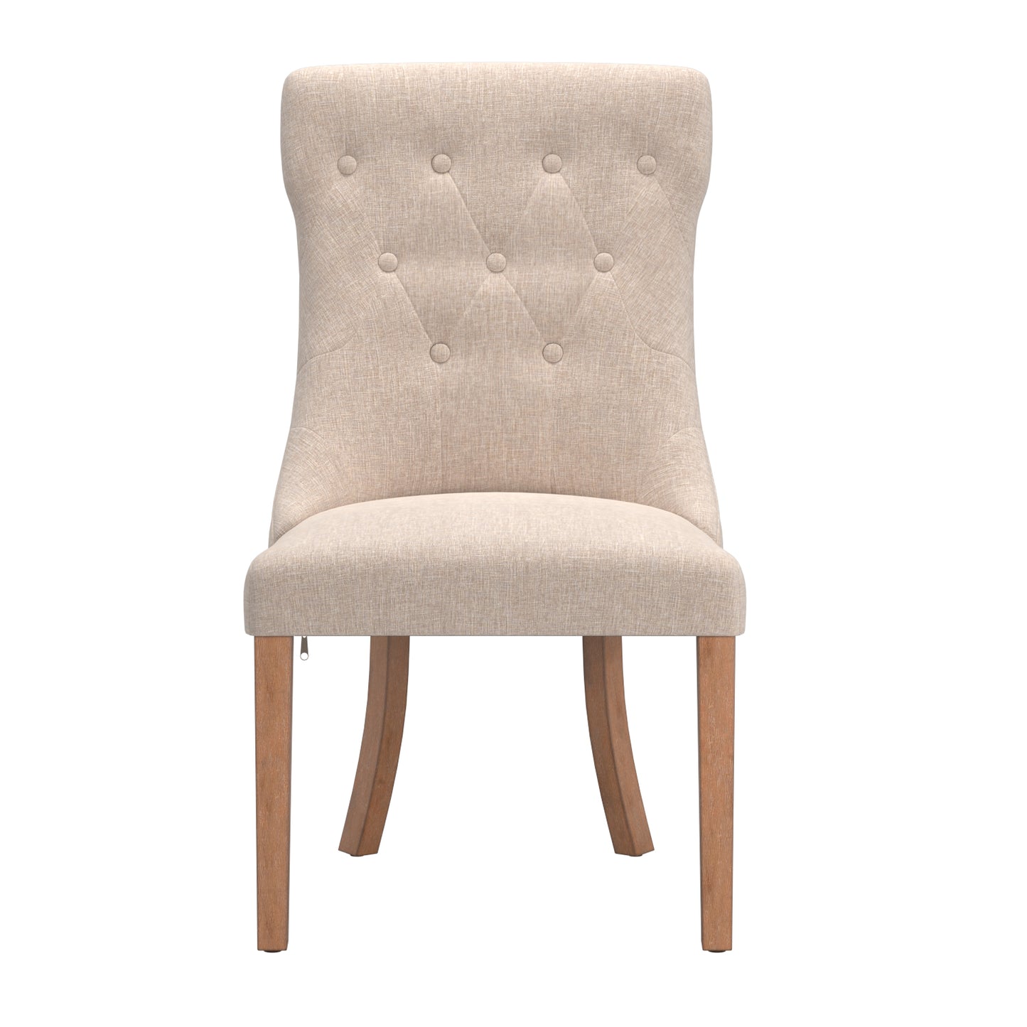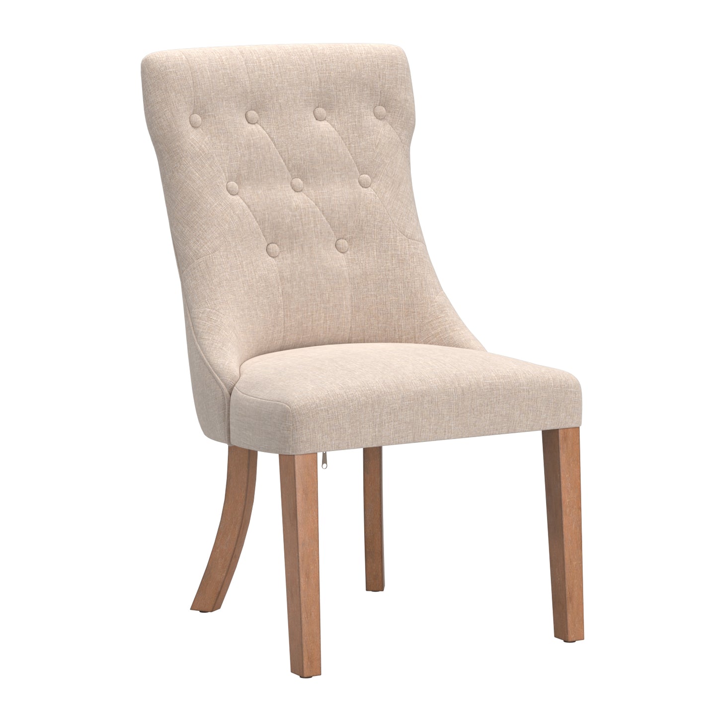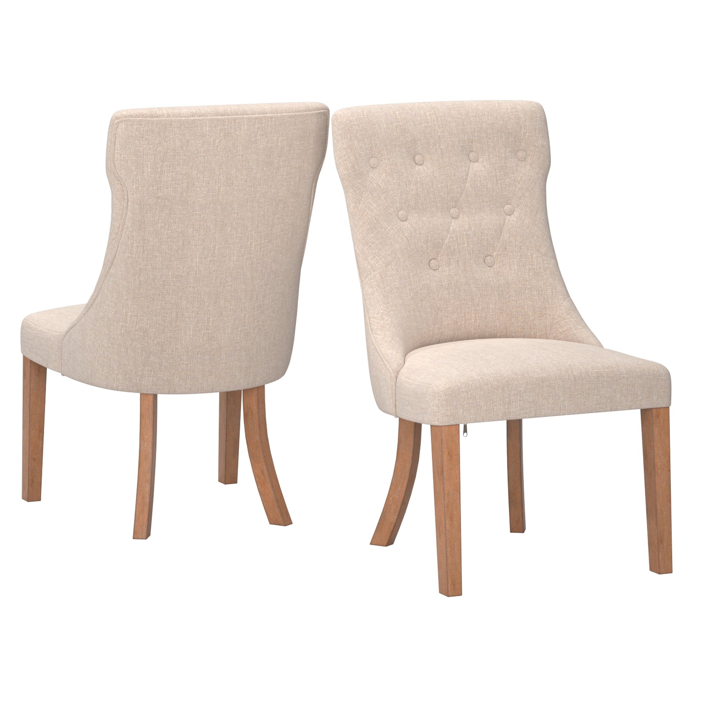 Button Tufted Dining Chairs (Set of 2) - Beige Linen, Natural Finish
