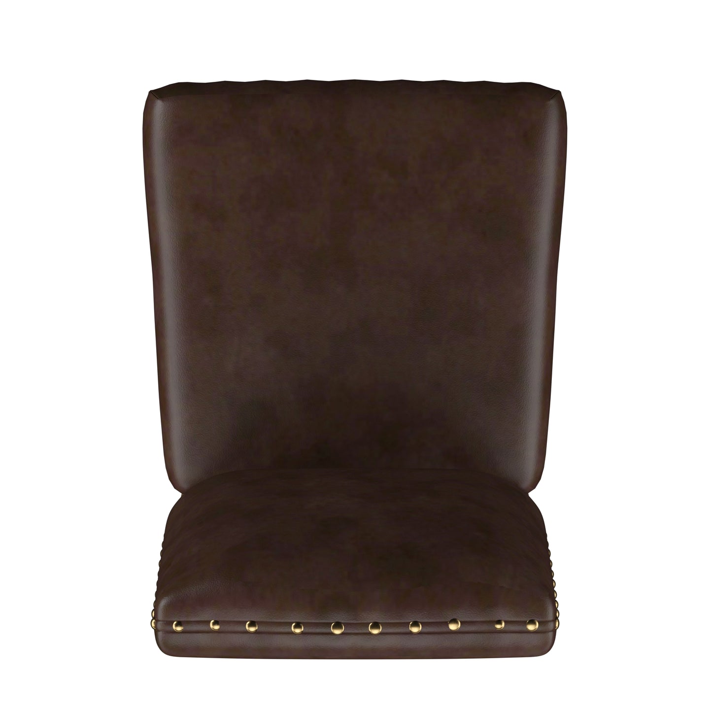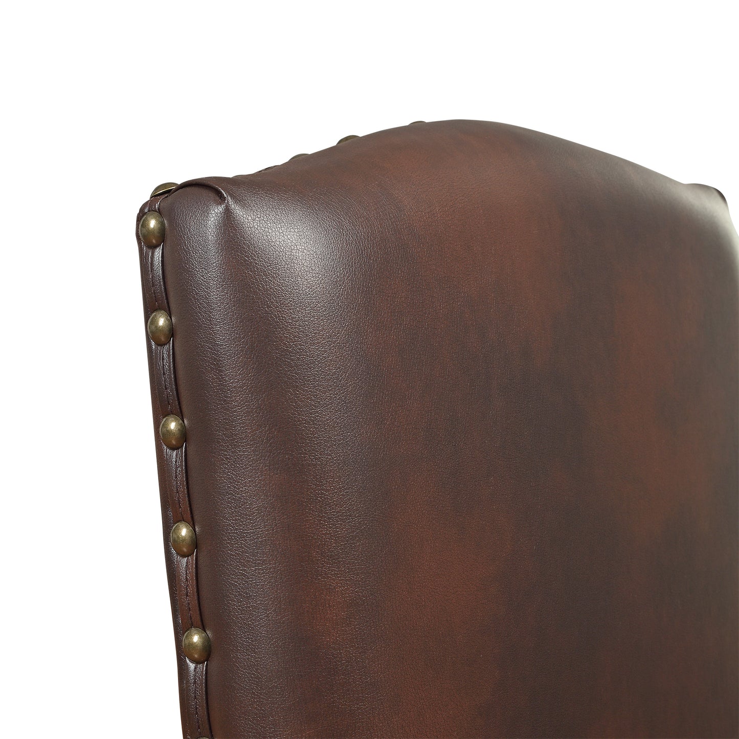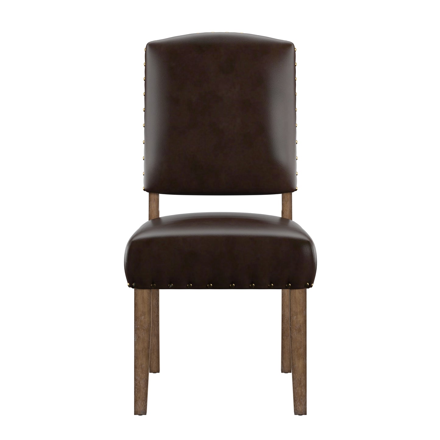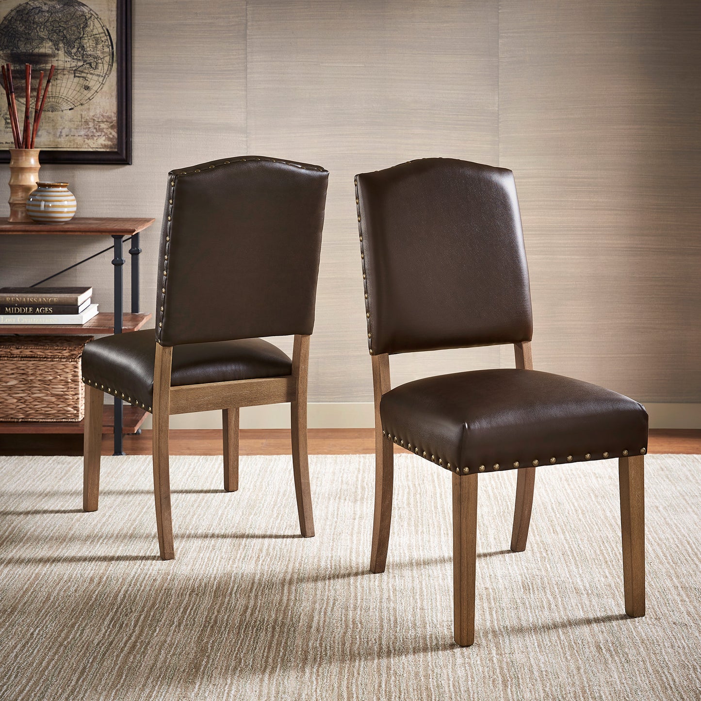 Nailhead Upholstered Dining Chairs (Set of 2) - Natural Finish, Brown Bonded Leather