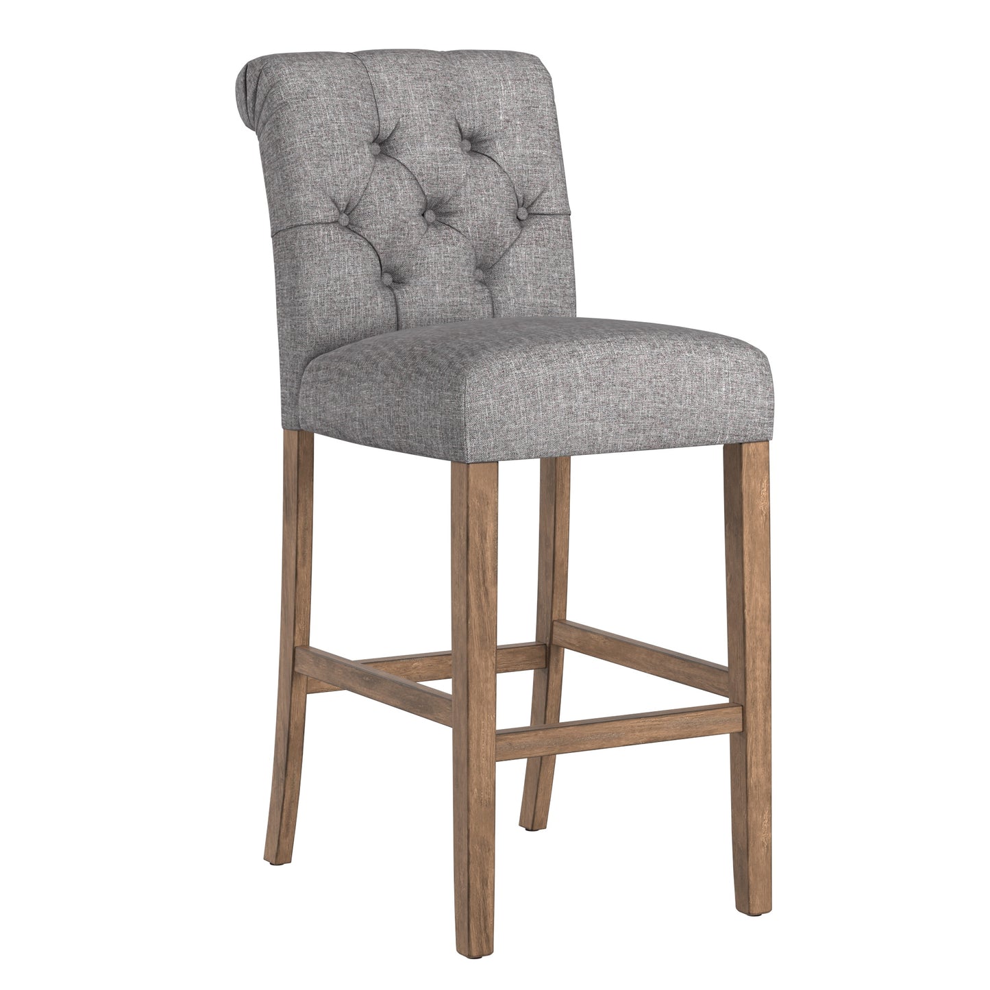 Tufted Rolled Back Bar Height Stools (Set of 2) - Gray