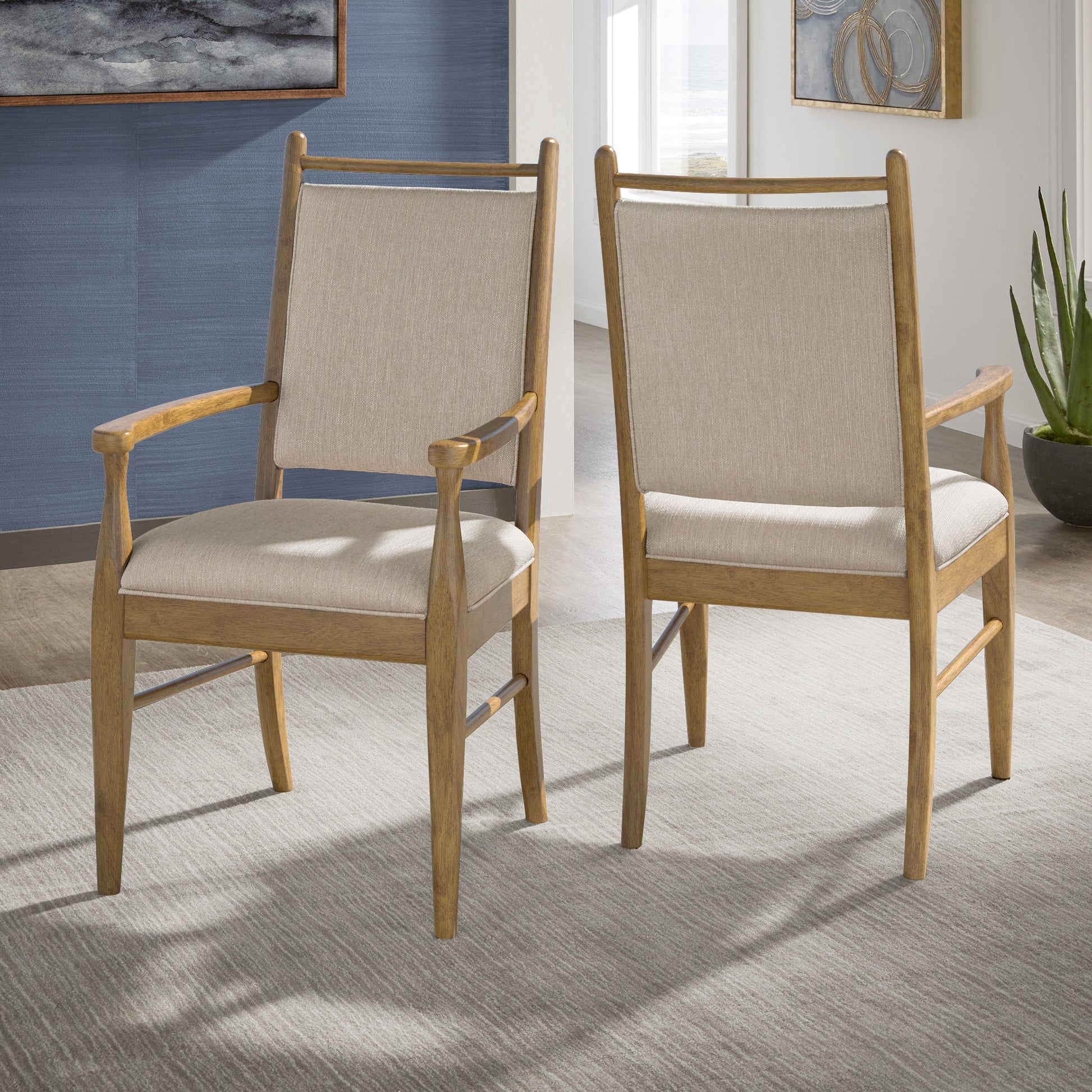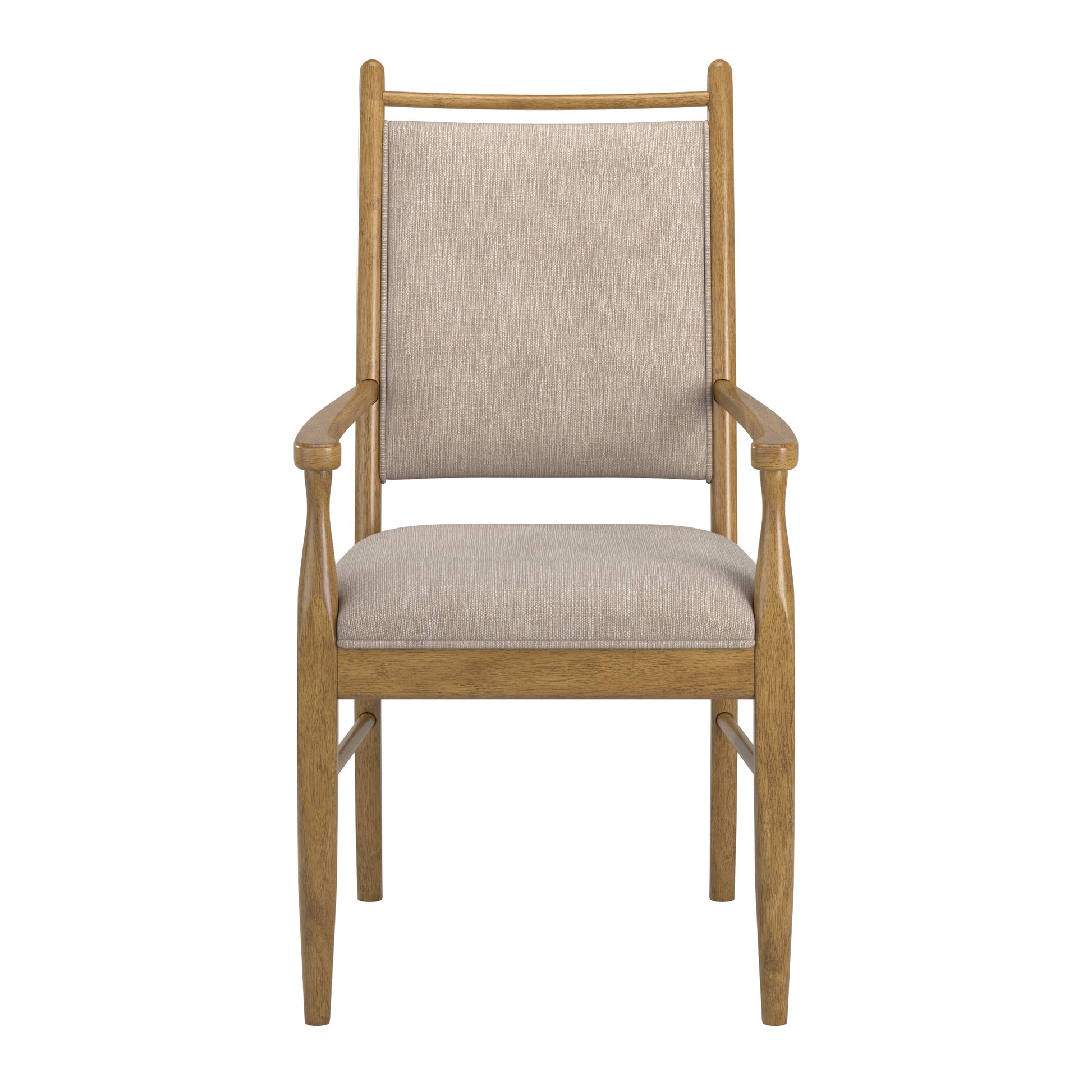 Wood Finish Beige Fabric Arm Chair (Set of 2) - Oak Wash