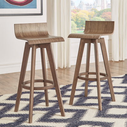 Mid-Century Modern Swivel Wood Stool (Set of 2) - Walnut Finish, Bar Height