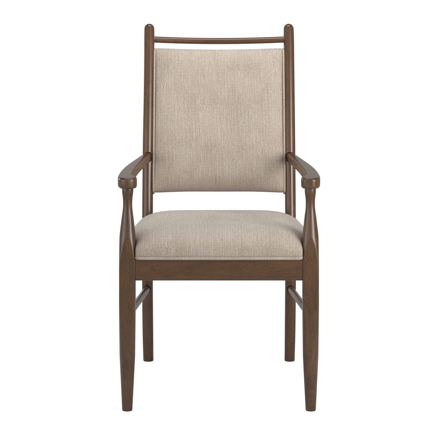 Wood Finish Beige Fabric Arm Chair (Set of 2) - Walnut