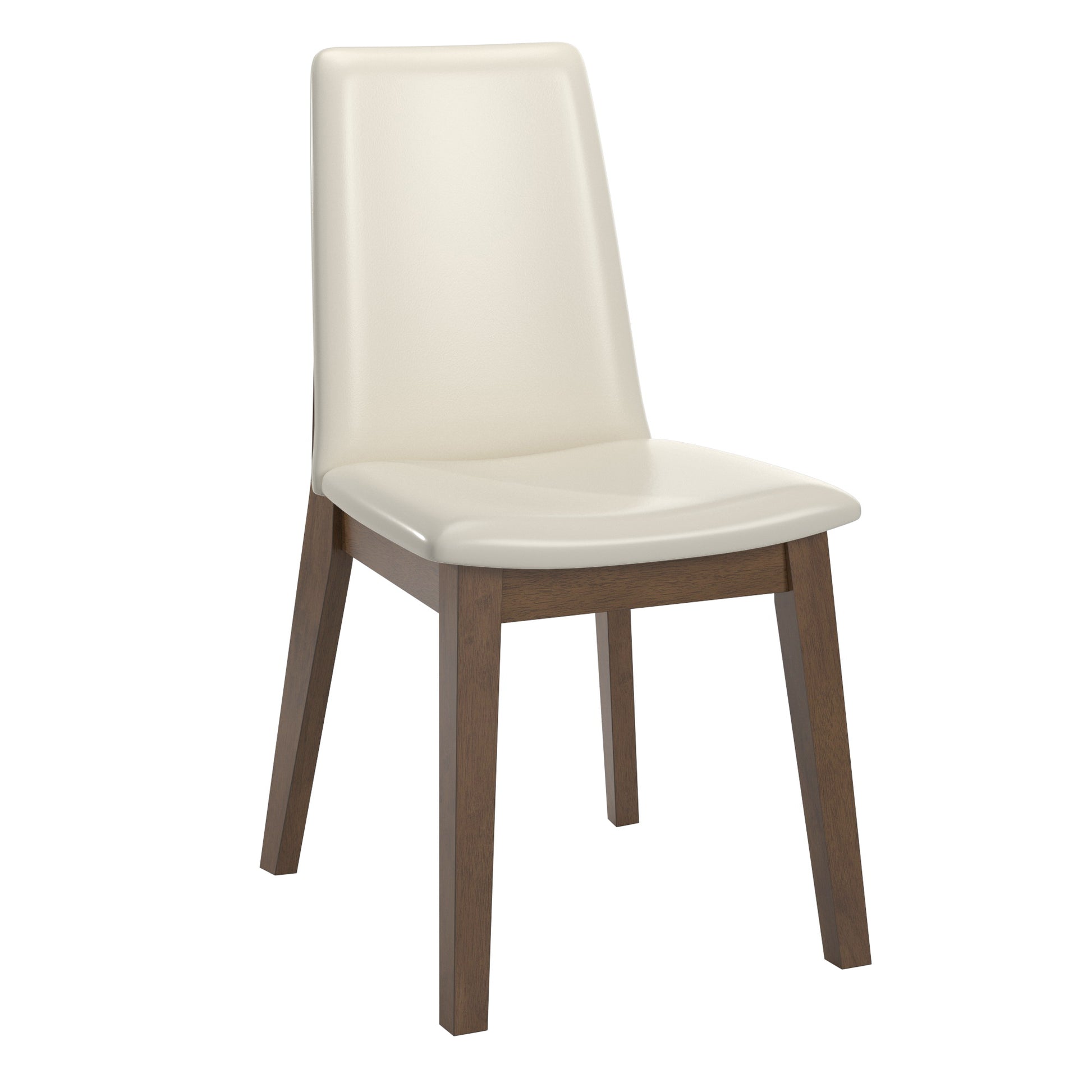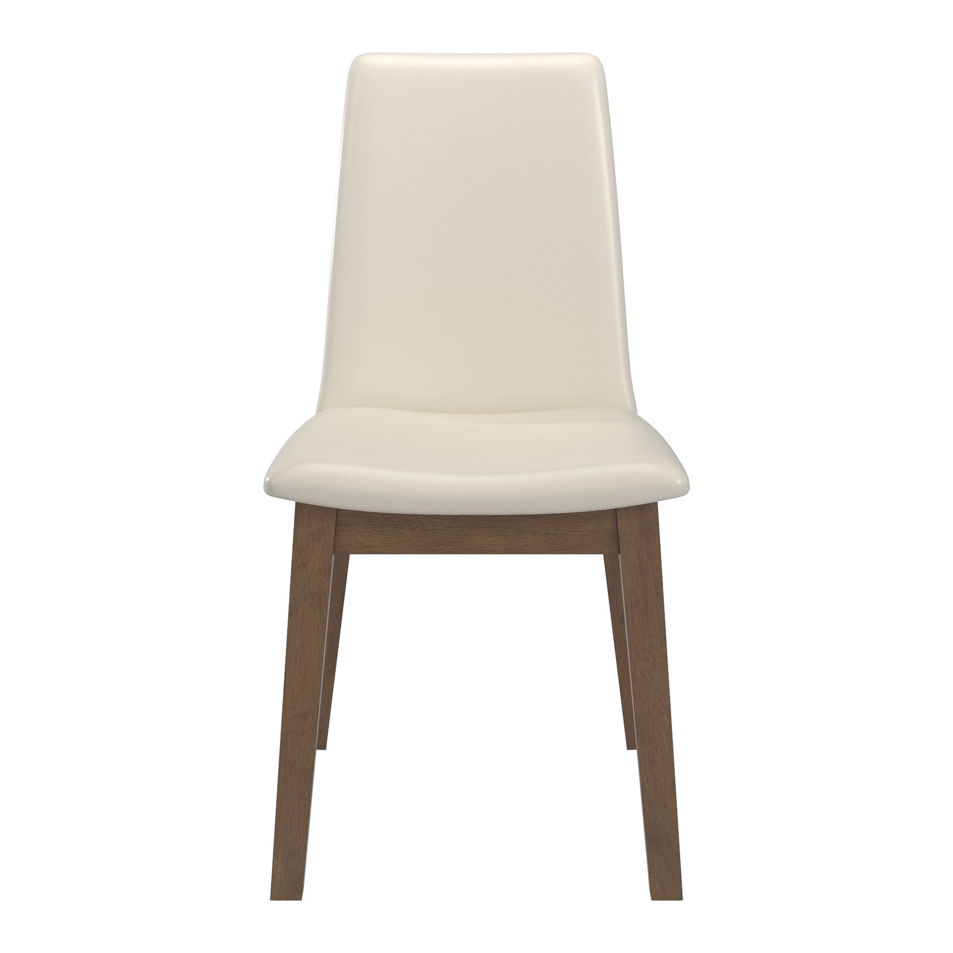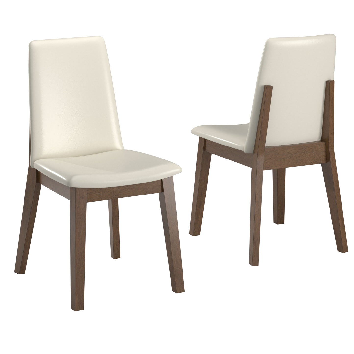 Wood Finish White Vegan Leather Dining Chair (Set of 2) - Walnut