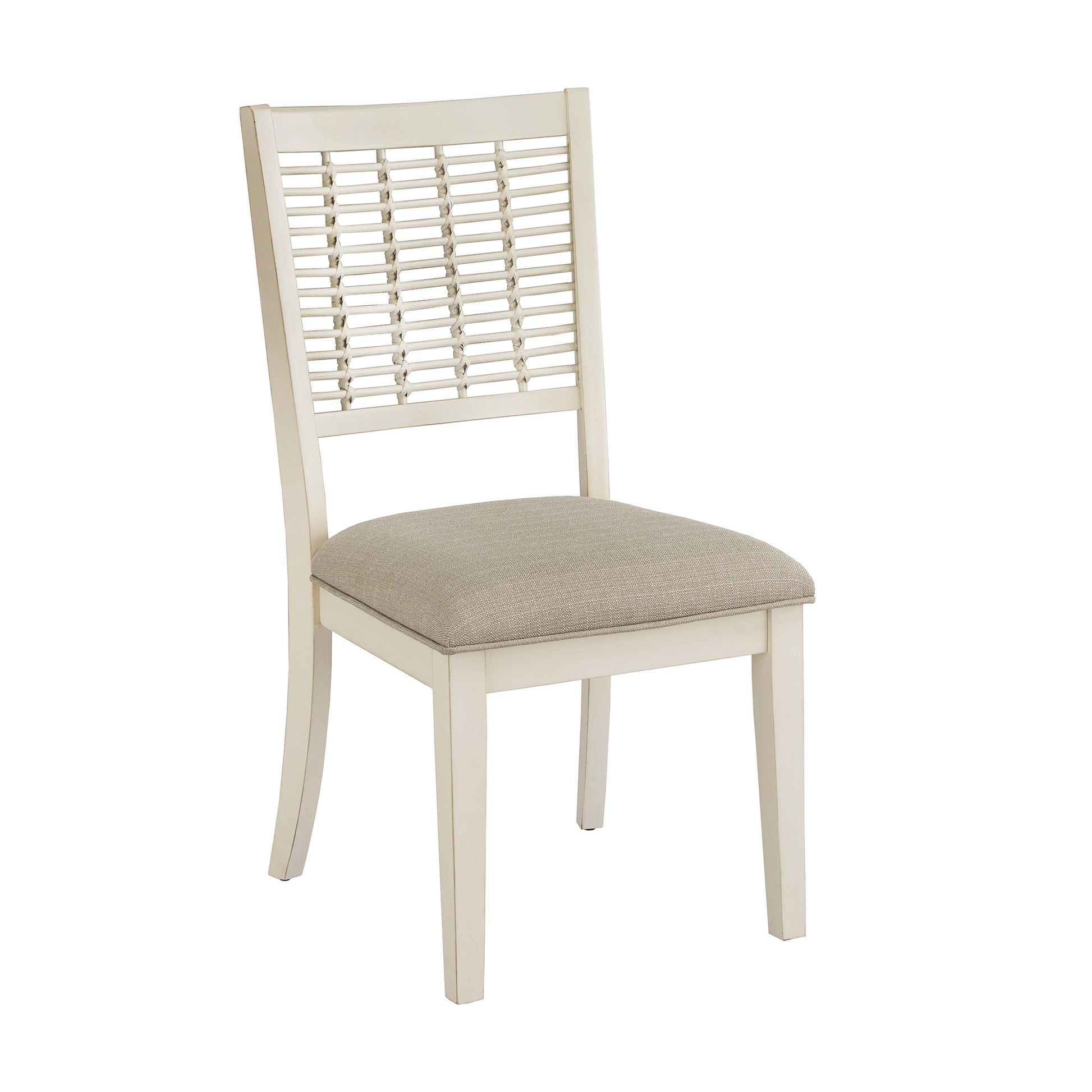 Transform your dining area into a breezy retreat with this Wicker Dining Chairs. The combination of a classic white finish and an exotic bamboo-style wicker back creates a warm, inviting atmosphere reminiscent of sunny climates and sandy beaches. The rubberwood and plywood construction offers durability, while the plush polyurethane foam pads provide a comfortable seat. The soft fabric upholstery adds a refined touch to the chairs, ensuring they blend seamlessly into your stylish dining space.