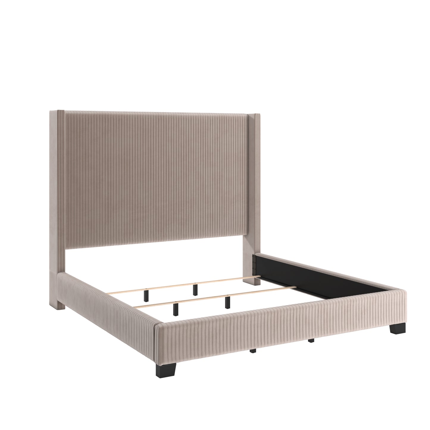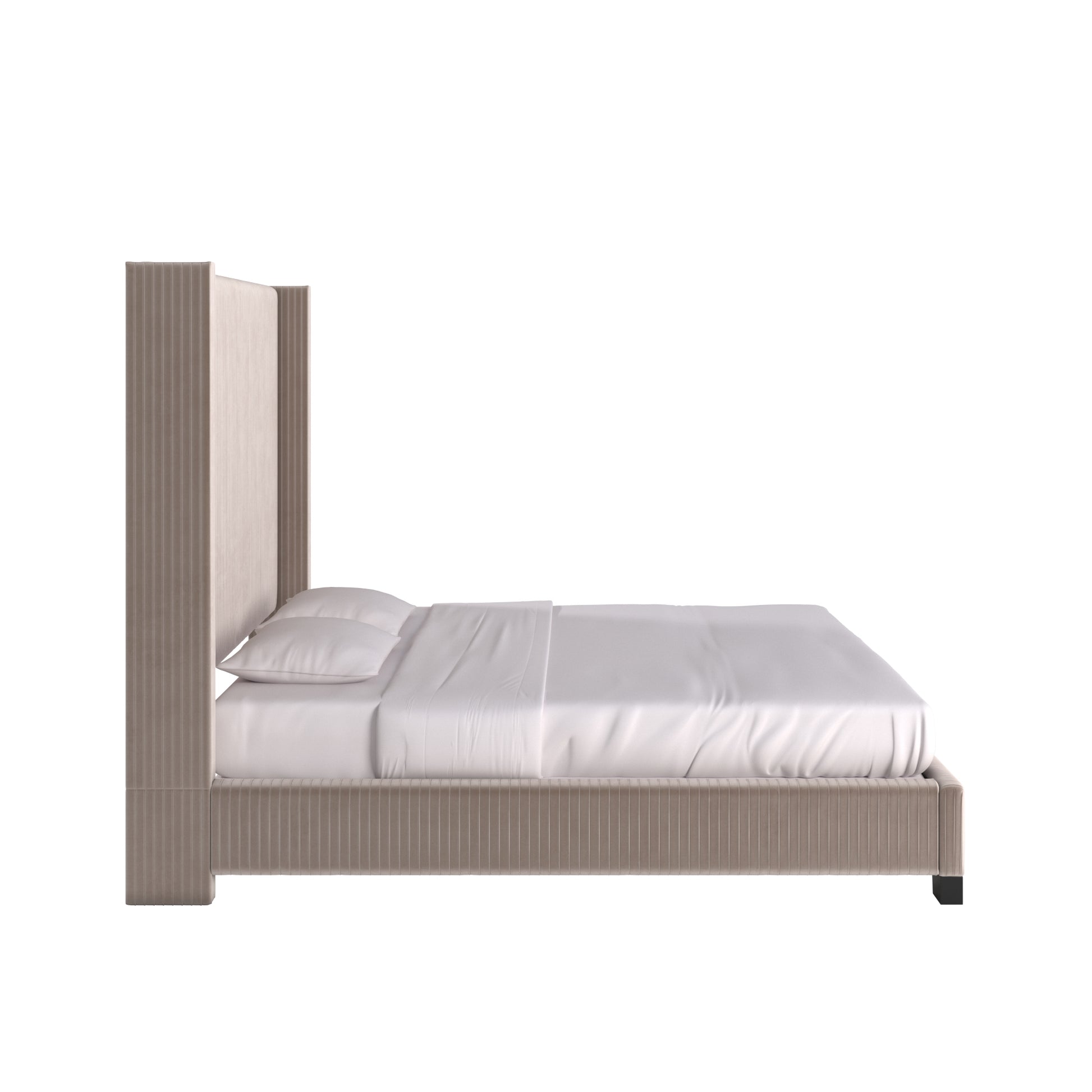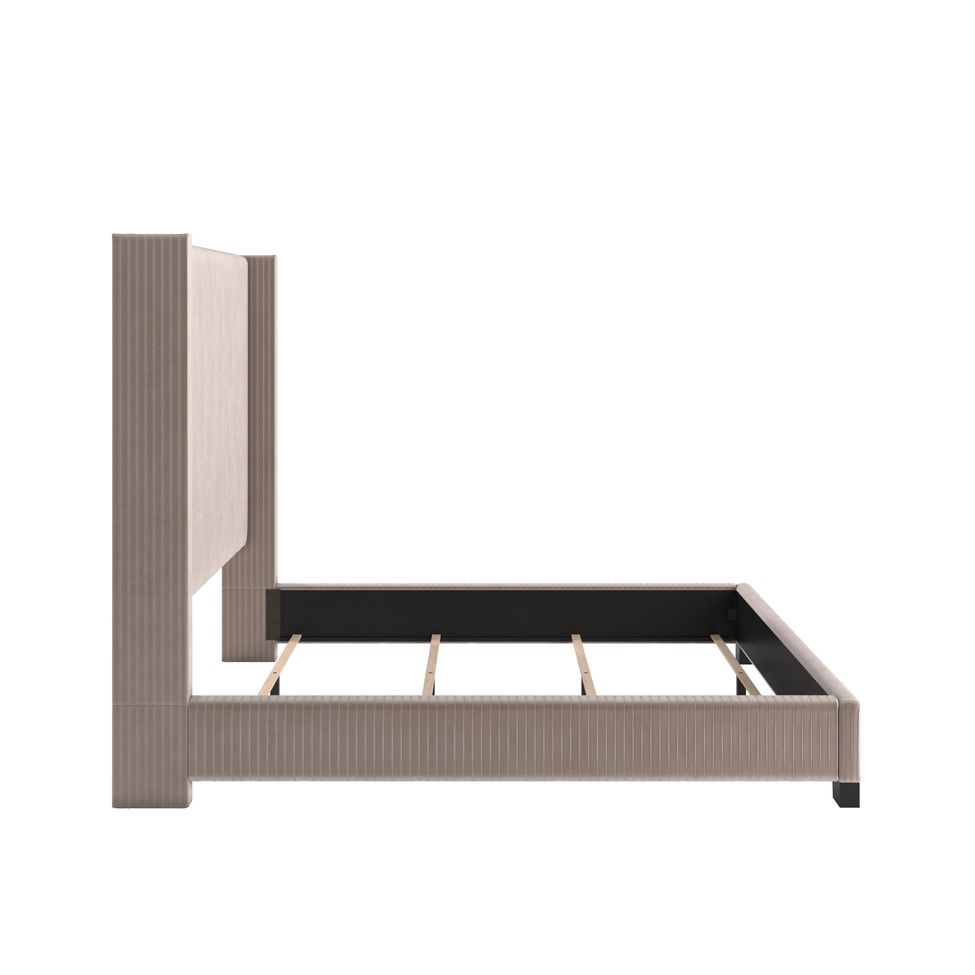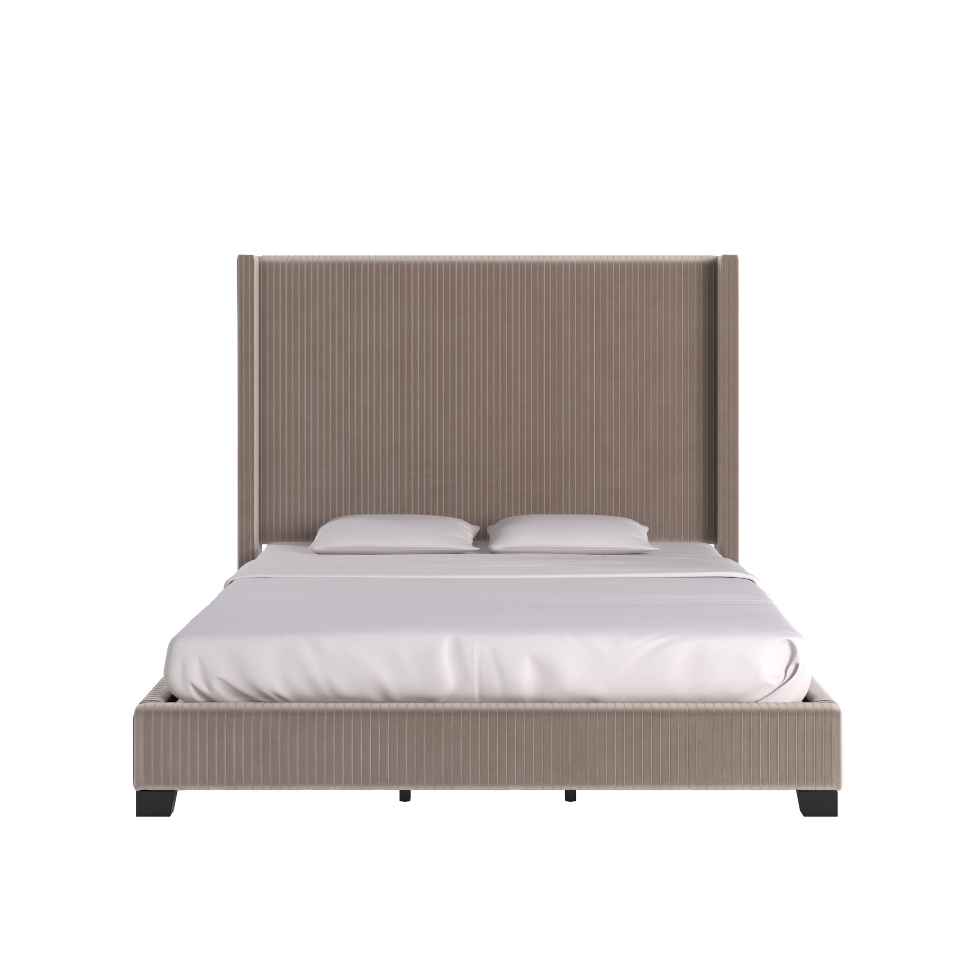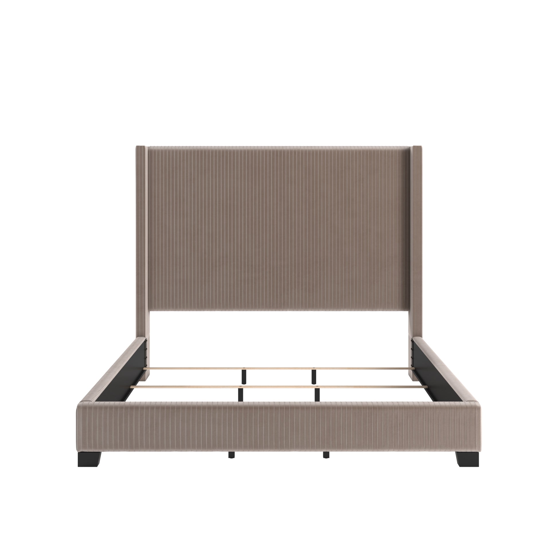 Pleated Velvet Wingback Bed - Taupe, King (King Size)