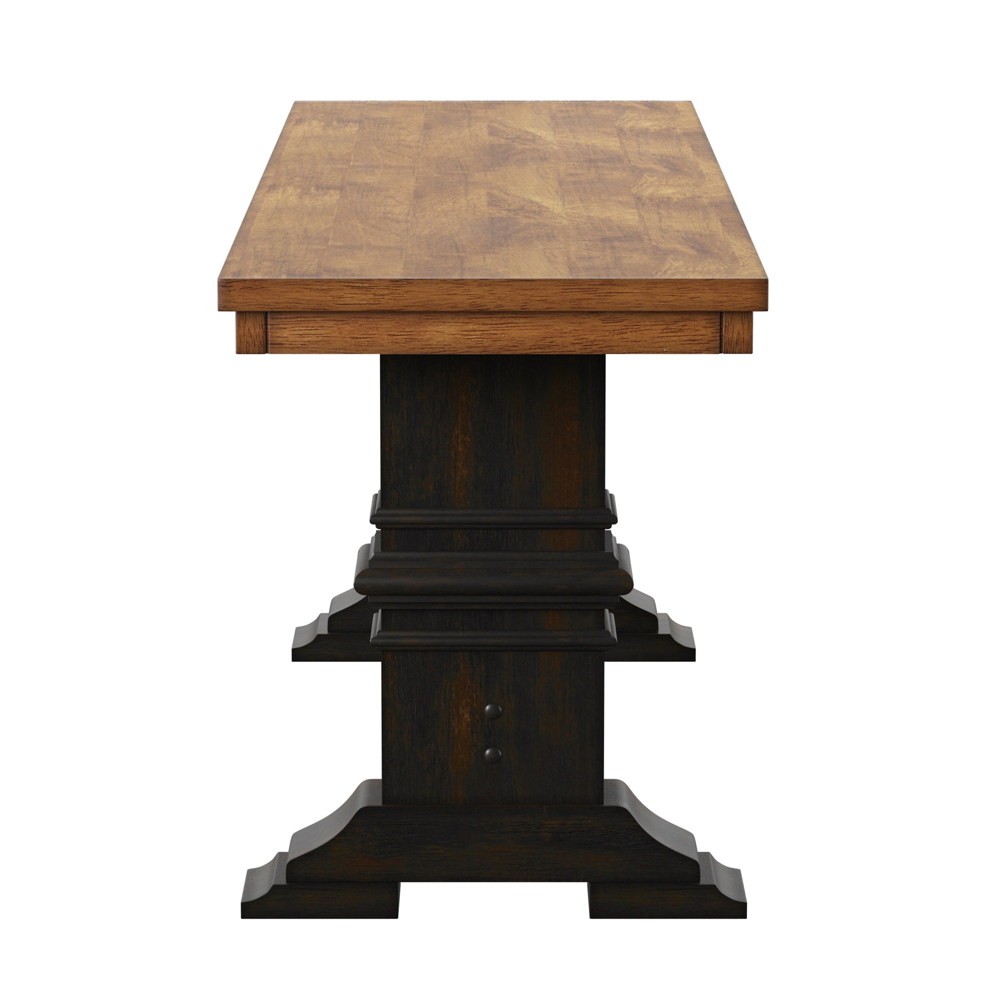 Two-Tone Trestle Leg Wood Dining Bench - Oak Top with Antique Black Base
