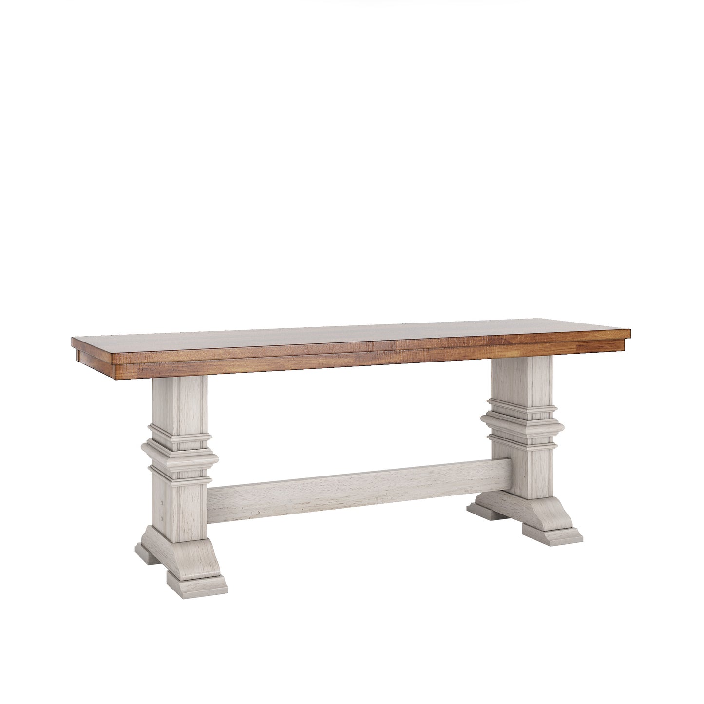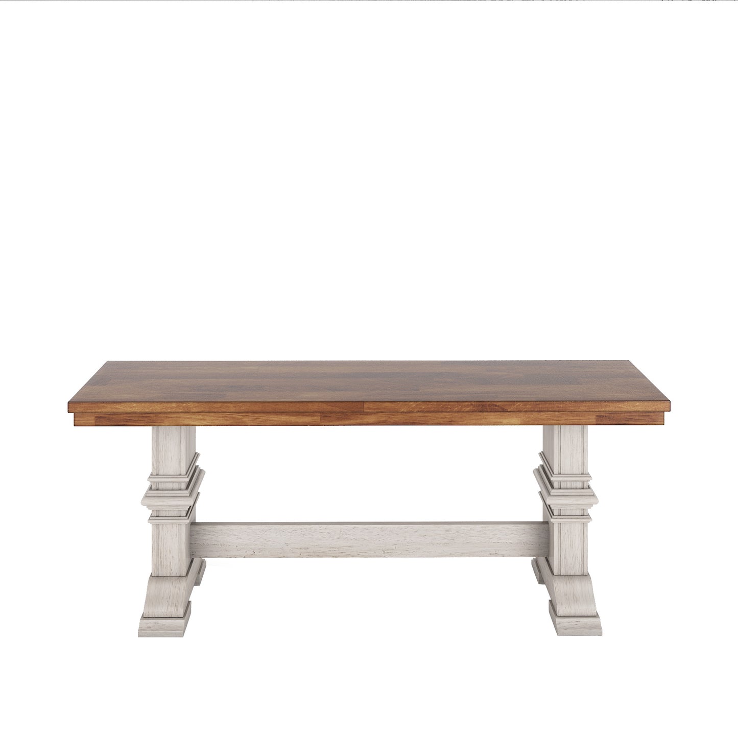 Two-Tone Trestle Leg Wood Dining Bench - Oak Top with Antique White Base
