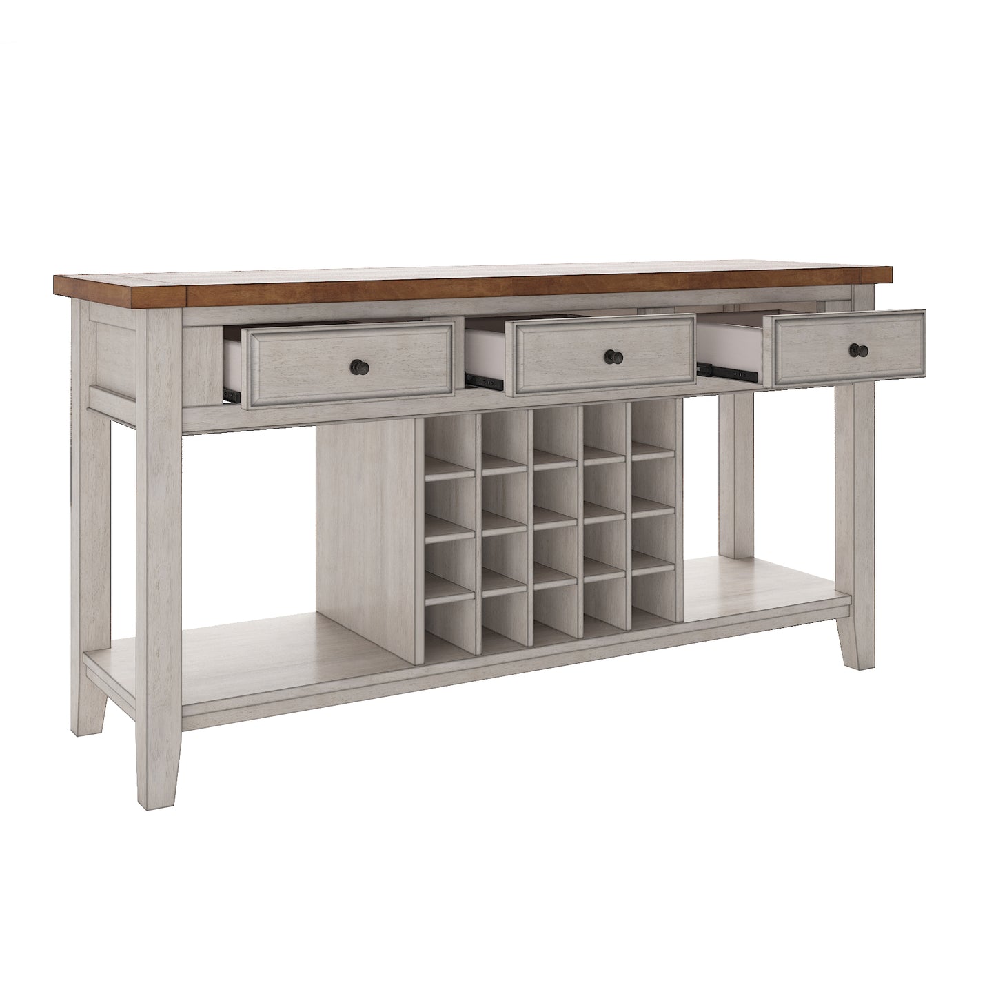 Two-Tone Wood Wine Rack Buffet Server - Oak Finish Top with Antique White Finish Base