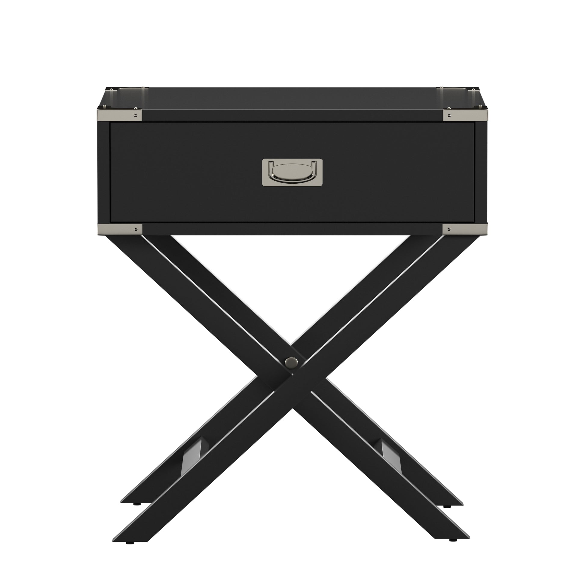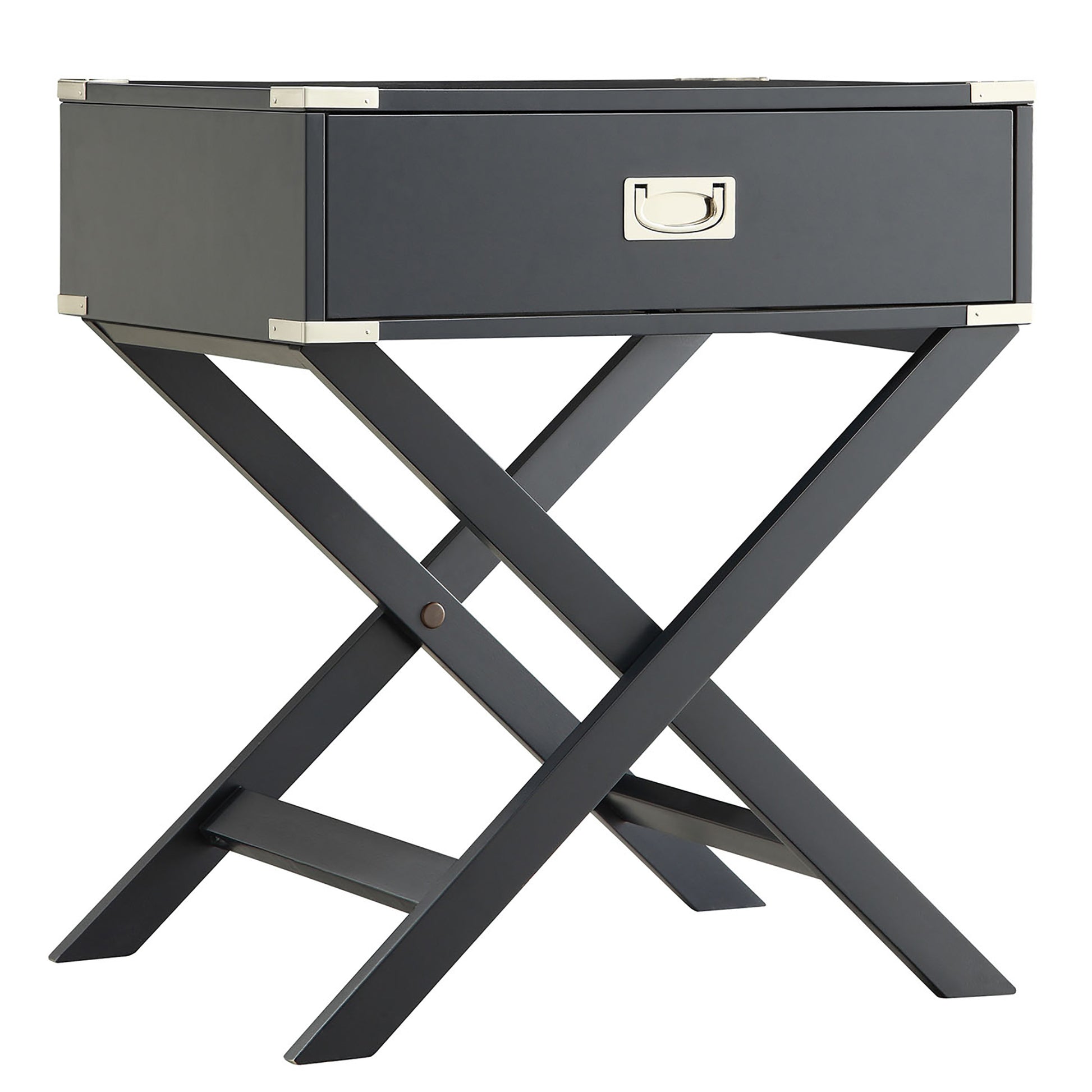 Complete your family room or reading nook with this accent table. This table's campaign-style design blends functionality with casual appeal, and its single drawer offers handy storage for books, office supplies, or electronic devices. Dovetail drawers with smooth ball bearing glides ensure smooth, easy operation for lasting service.