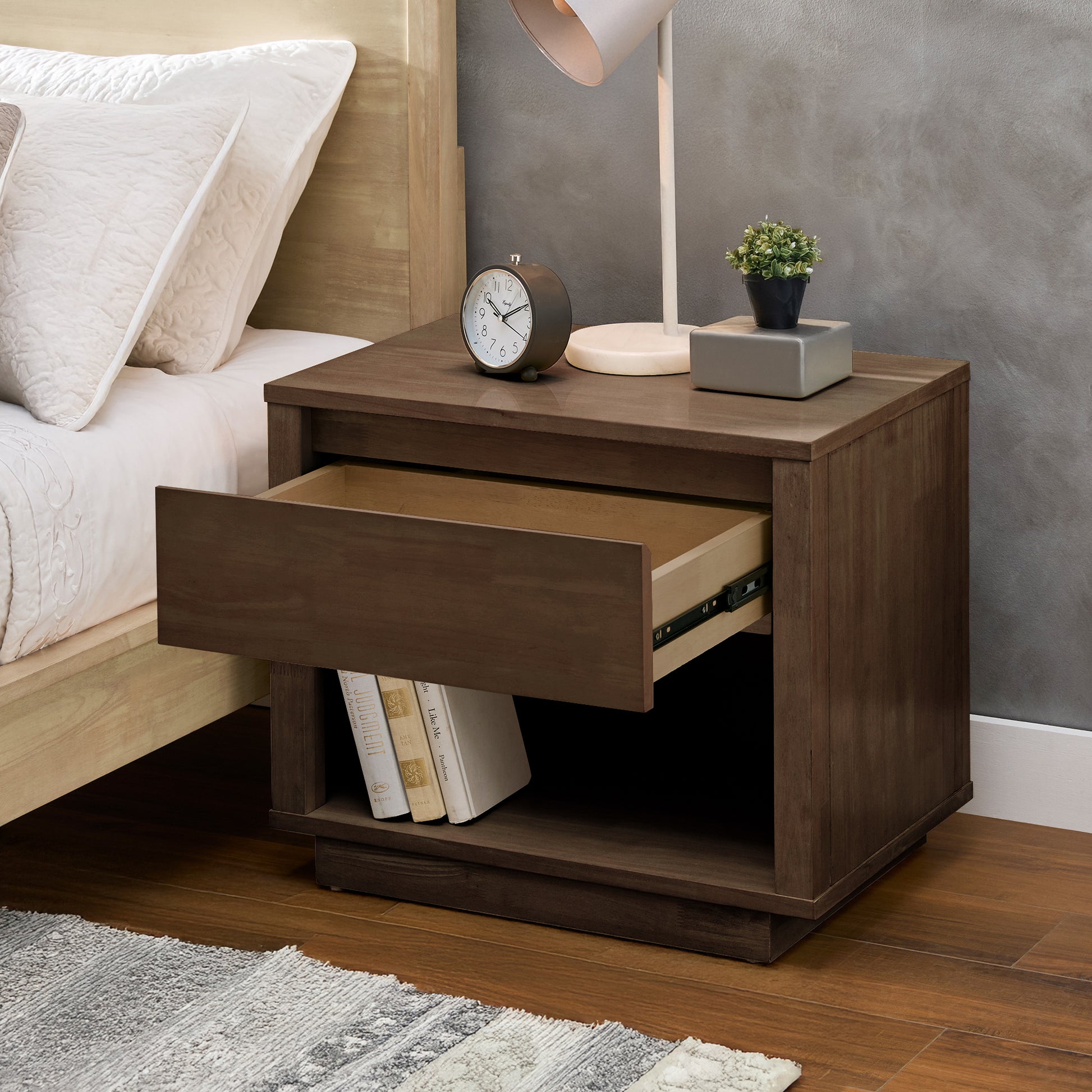 Refresh your bedroom layout with our One-Drawer Danish-inspired Modern Nightstand, thoughtfully designed to enhance modern living. This bedside table guarantees both stability and style and is made from rubberwood. The spacious drawer keeps clutter hidden away, while the open lower glides smoothly shelf provides a convenient space to stack your favorite reads. Whether placed beside your platform bed or in a cozy reading nook, this versatile piece is sure to make a refined statement.