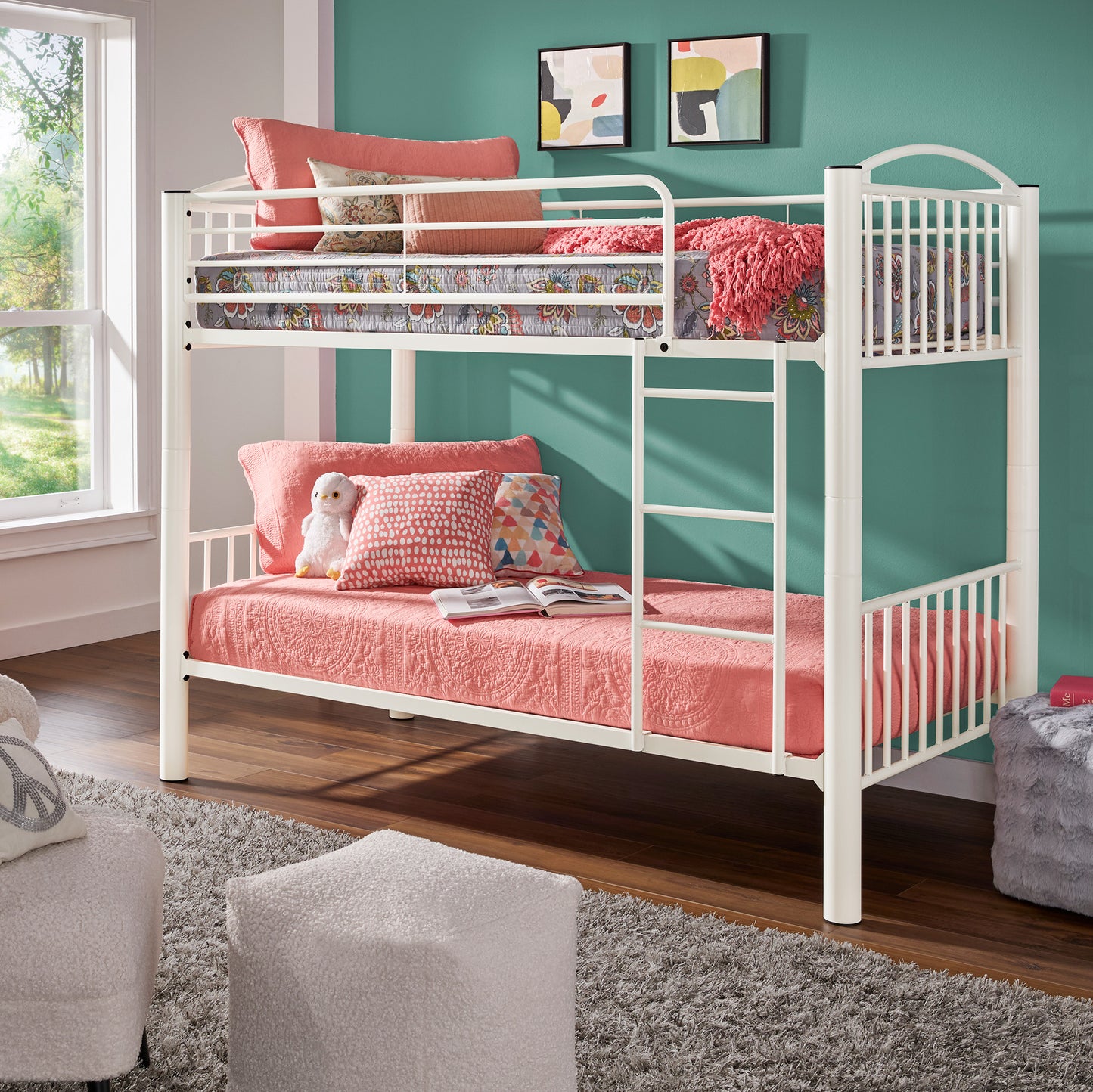 VersaFlex Metal Bunk Bed - White, Convertible Twin over Twin