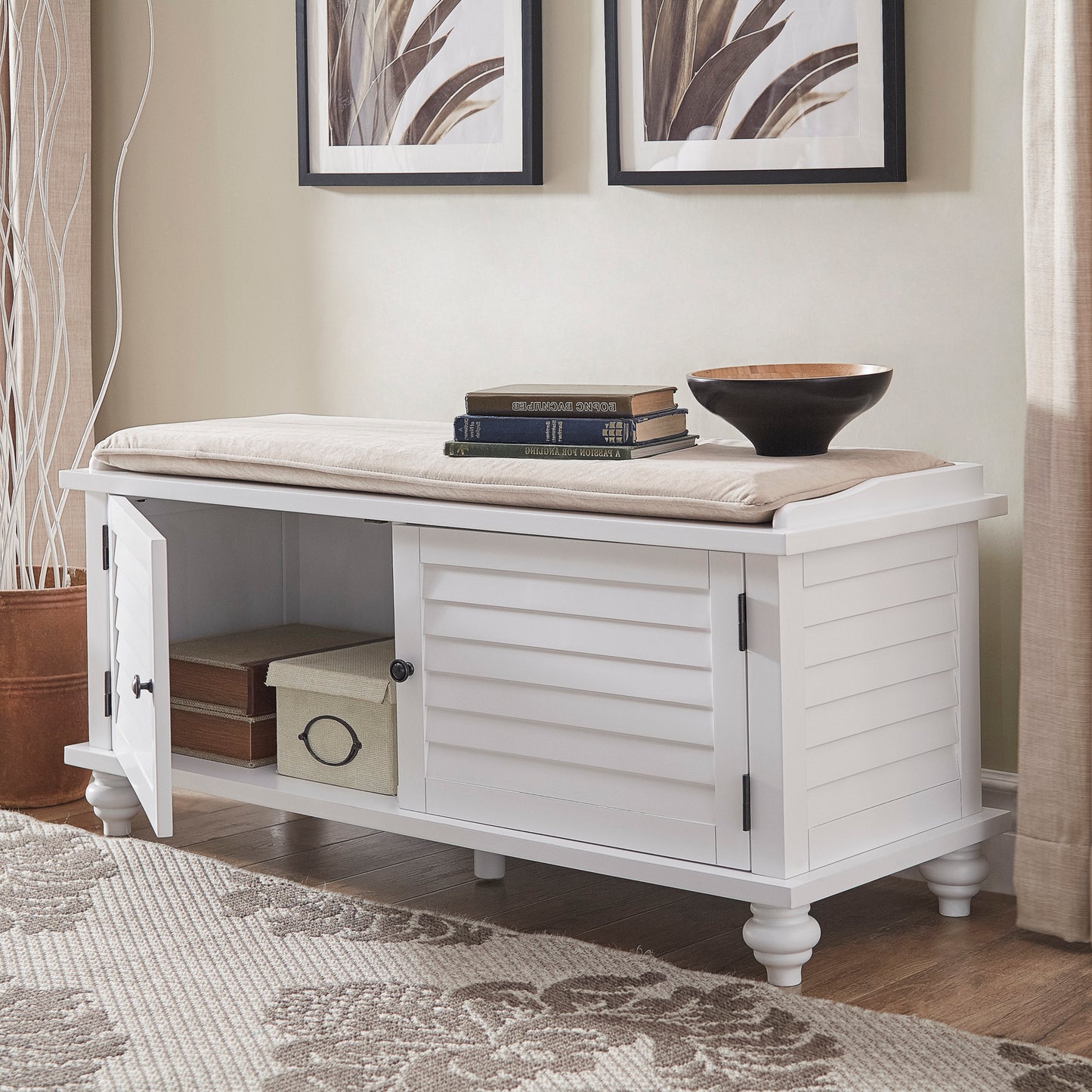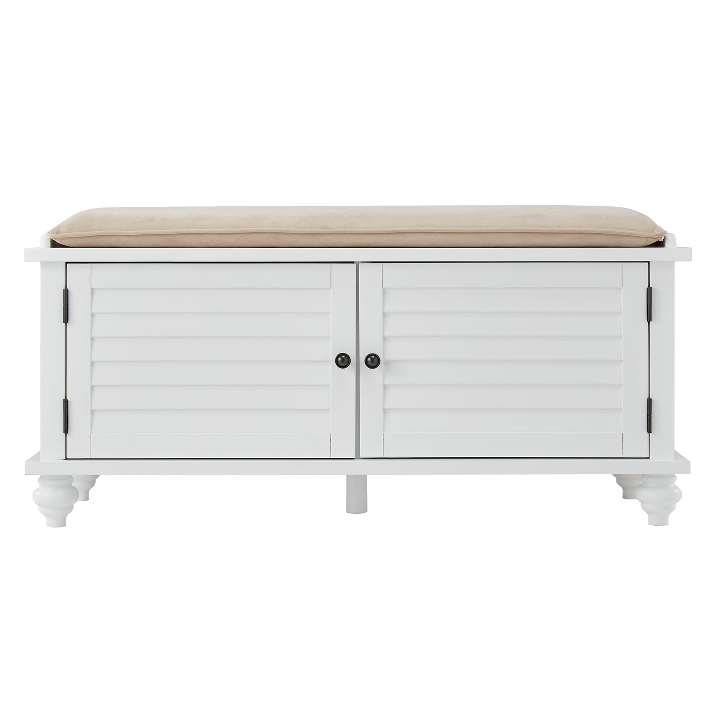 Add style and functionality to your home with the iNSPIRE Q storage bench from iNSPIRE Q Classic. Traditional elements like shutter doors and bun feet create a timeless look, while the cushioned seat offers comfort and convenience. Keep your living space clutter-free by storing books, blankets, games, and many other items out of sight within the spacious storage compartment.
