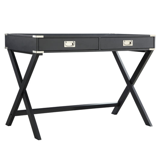 X-Base Wood Accent Campaign Writing Desk - Espresso