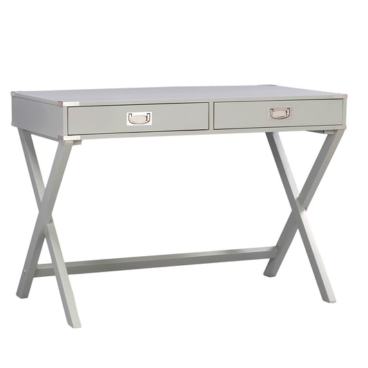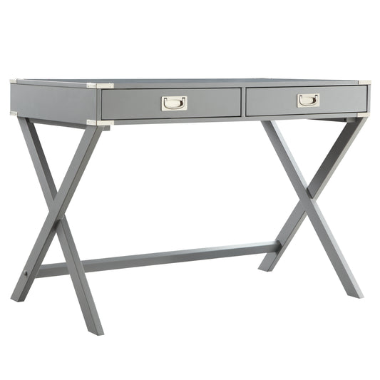 X-Base Wood Accent Campaign Writing Desk - Gray