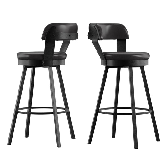 Faux Leather Metal Swivel 29" Bar Height Stools (Set of 2) - Black