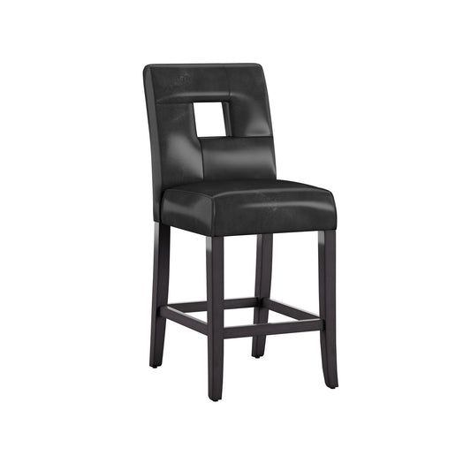 Keyhole Counter Height High Back Stools (Set of 2) - Black Faux Leather