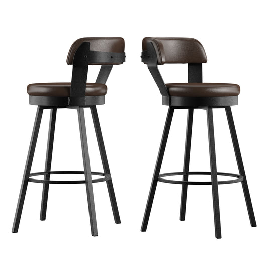 Faux Leather Metal Swivel 29" Bar Height Stools (Set of 2) - Brown