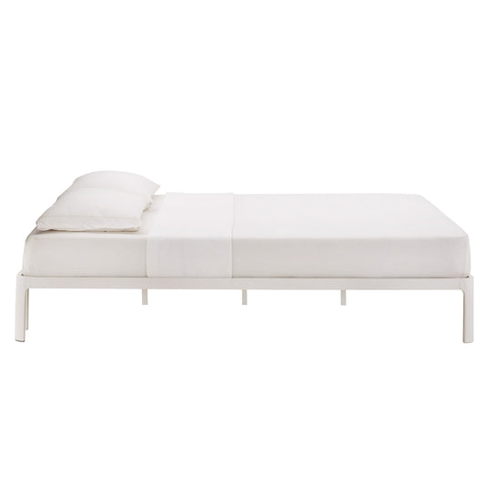 Beaded Spindle Metal Platform Bed - White, Queen Size (Queen Size)